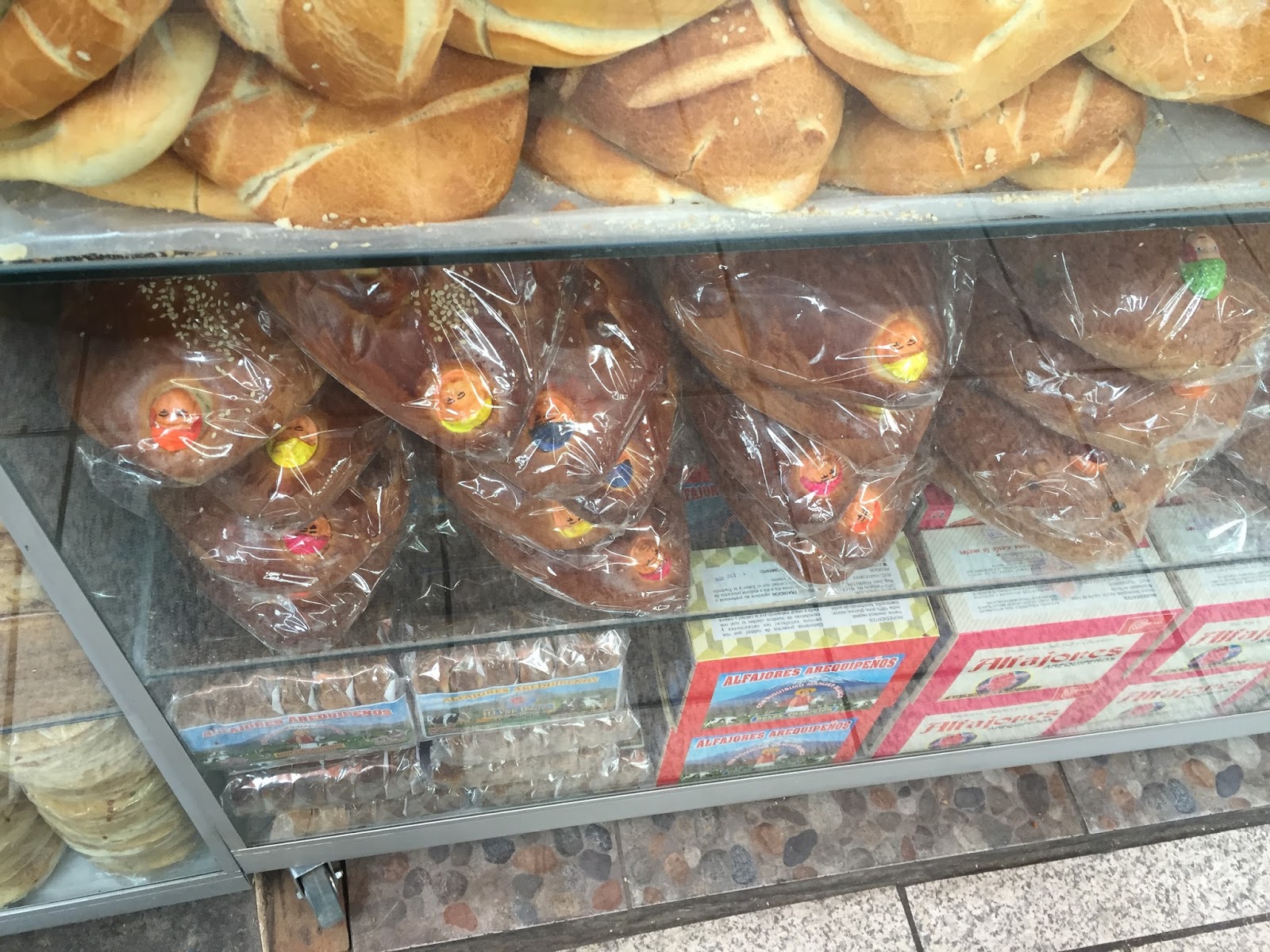 The other weird thing we came across in the mercado was near the bakery stalls. The bakers were selling these loaves of bread that had little babies heads painted on them....